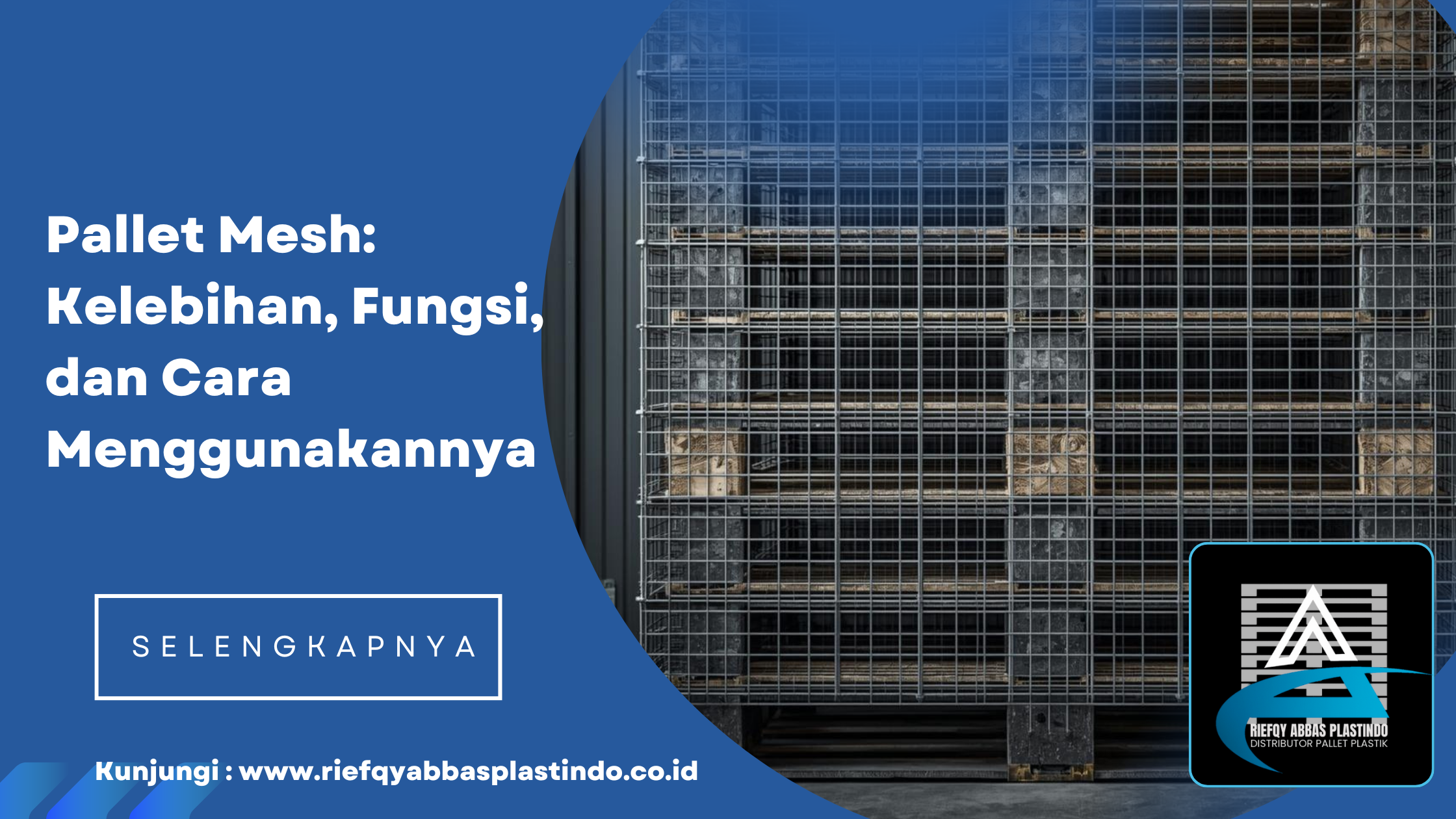 Pallet mesh adalah wadah berbentuk keranjang berbahan dasar baja dengan struktur jaring (mesh) yang dipasang pada rangka pallet. Desain ini memungkinkan penyimpanan barang lebih rapi, mudah terlihat, dan tetap terlindungi, terutama untuk produk yang perlu ventilasi udara.