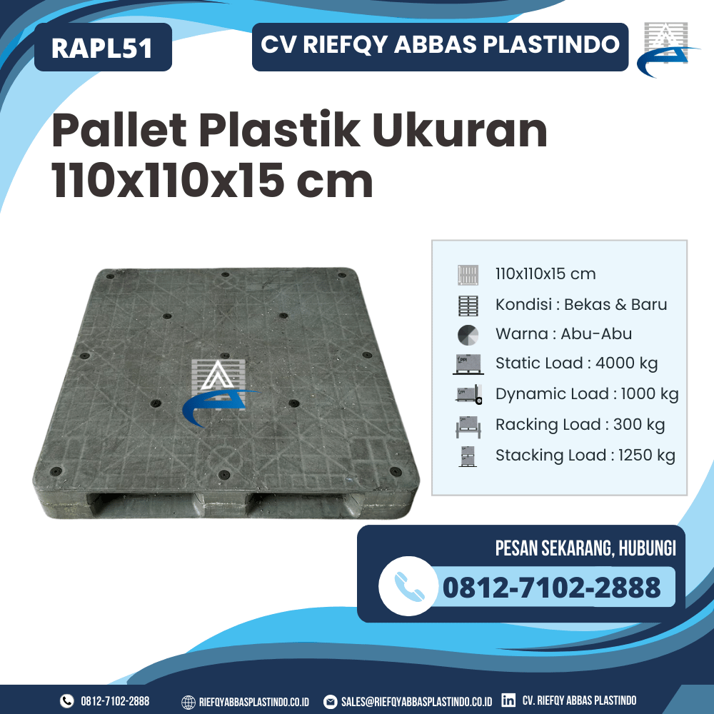 CV Riefqy Abbas Plastindo selalu berkomitmen menghadirkan produk berkualitas tinggi dengan layanan terbaik. Pallet Plastik RAPL51 menjadi bukti nyata dedikasi kami dalam menyediakan pallet yang kuat, aman, dan siap pakai. Dengan harga kompetitif dan kualitas terjamin, pallet ini menjadi pilihan utama bagi siapa saja yang menginginkan produk handal, tahan lama, dan fungsional.