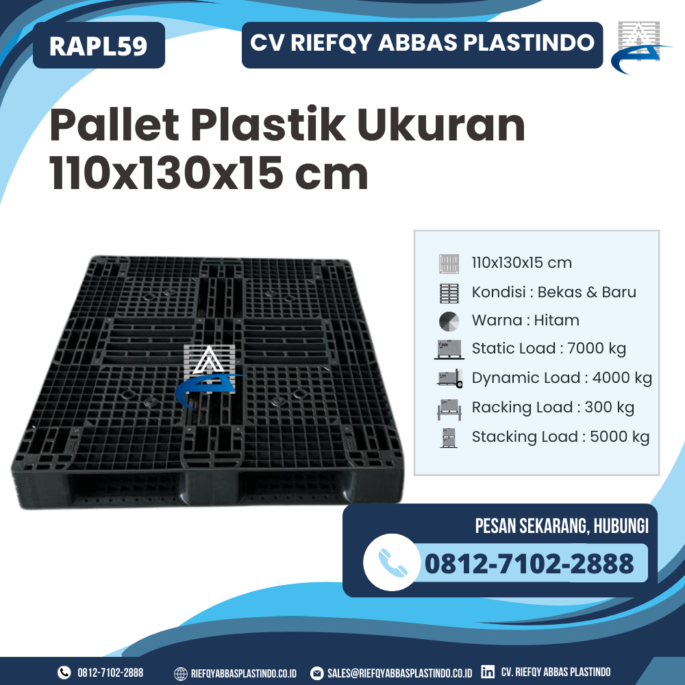 CV Riefqy Abbas Plastindo selalu berkomitmen menghadirkan produk berkualitas tinggi dengan layanan terbaik. Pallet Plastik RAPL59 menjadi bukti nyata dedikasi kami dalam menyediakan pallet yang kuat, aman, dan siap pakai. Dengan harga kompetitif dan kualitas terjamin, pallet ini menjadi pilihan utama bagi siapa saja yang menginginkan produk handal, tahan lama, dan fungsional.