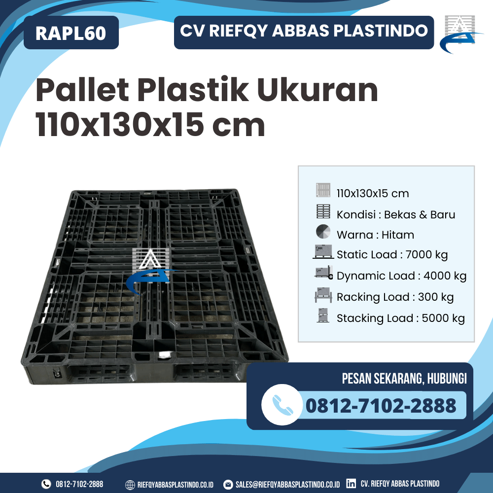 CV Riefqy Abbas Plastindo selalu berkomitmen menghadirkan produk berkualitas tinggi dengan layanan terbaik. Pallet Plastik RAPL60 menjadi bukti nyata dedikasi kami dalam menyediakan pallet yang kuat, aman, dan siap pakai. Dengan harga kompetitif dan kualitas terjamin, pallet ini menjadi pilihan utama bagi siapa saja yang menginginkan produk handal, tahan lama, dan fungsional.