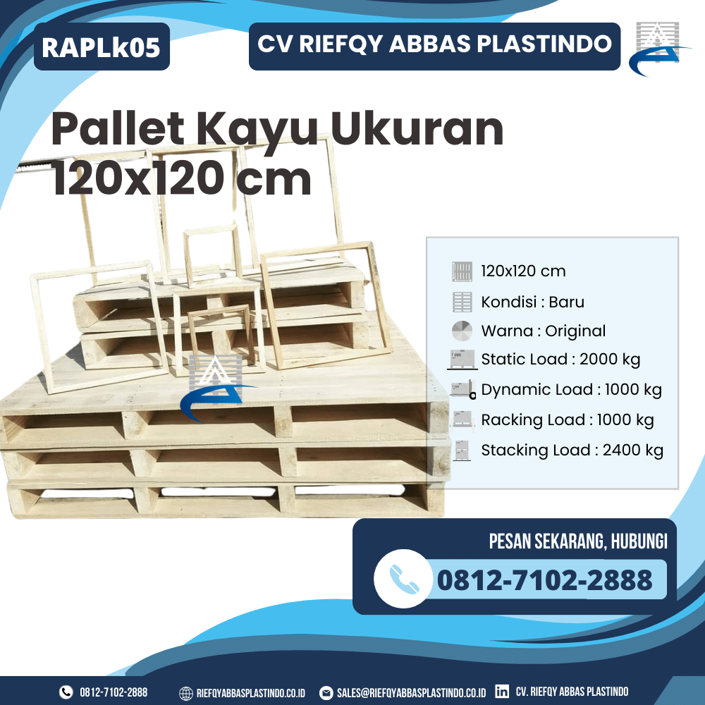 Dapatkan Pallet Kayu Bekas/Baru Ukuran 120×120 cm – RAPLK05 dengan harga terbaik hanya di CV Riefqy Abbas Plastindo.