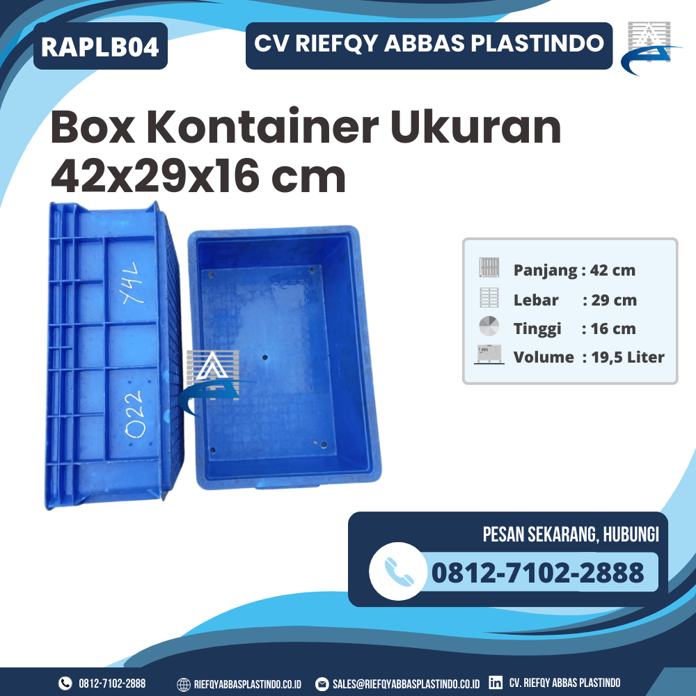 Dalam dunia industri, distribusi, dan penyimpanan barang, penggunaan wadah yang kokoh, higienis, dan efisien menjadi faktor penting yang menunjang kelancaran operasional. CV Riefqy Abbas Plastindo, sebagai perusahaan yang berfokus pada penjualan box container plastik bekas maupun baru, hadir memberikan solusi terbaik dengan produk Box Container Bekas/Baru Ukuran 42x29x16 – RAPLB04. Produk ini tidak hanya menawarkan kualitas tinggi, tetapi juga harga yang terjangkau sehingga dapat memenuhi kebutuhan berbagai segmen usaha.