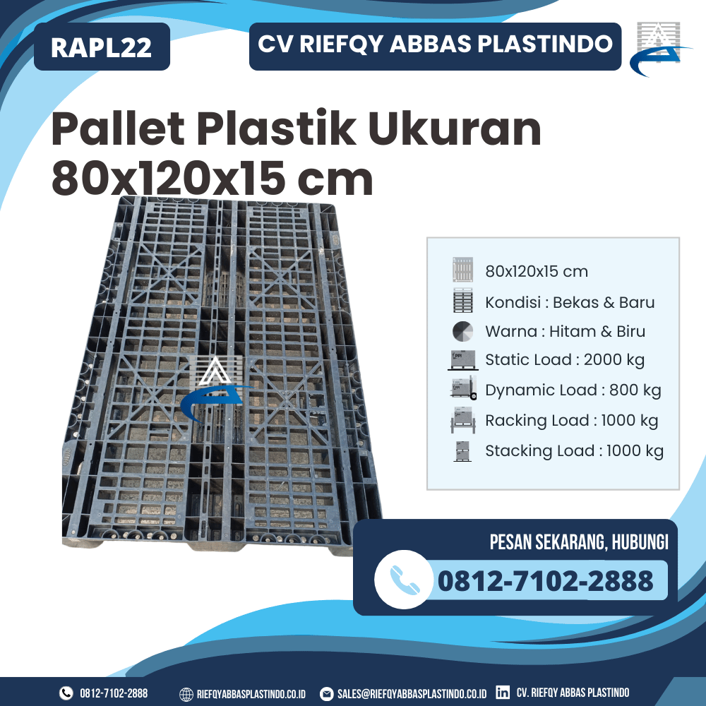 CV Riefqy Abbas Plastindo menghadirkan produk unggulan berupa Pallet Plastik Ukuran 80x120x15 cm – RAPL22, solusi tepat untuk kebutuhan penyimpanan maupun pengangkutan barang dengan standar mutu tinggi. Pallet ini dirancang khusus menggunakan material pilihan serta melalui proses produksi yang ketat, sehingga mampu memberikan performa optimal dalam berbagai kebutuhan. Dengan kombinasi kualitas, ketahanan, serta harga yang bersahabat, pallet ini menjadi pilihan cerdas bagi banyak pengguna di berbagai wilayah Indonesia.